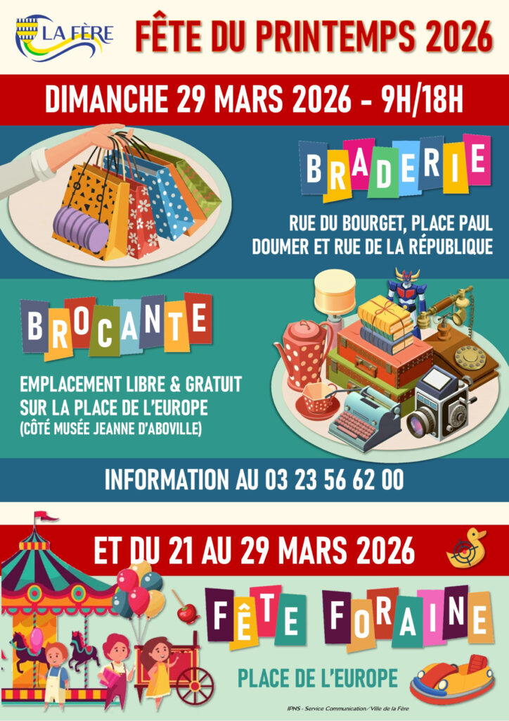 La Brocante aura lieu sur la place de l’Europe (côté Musée). Les emplacements pour celle-ci sont gratuits, sans inscription, placement selon l’ordre d’arrivée.