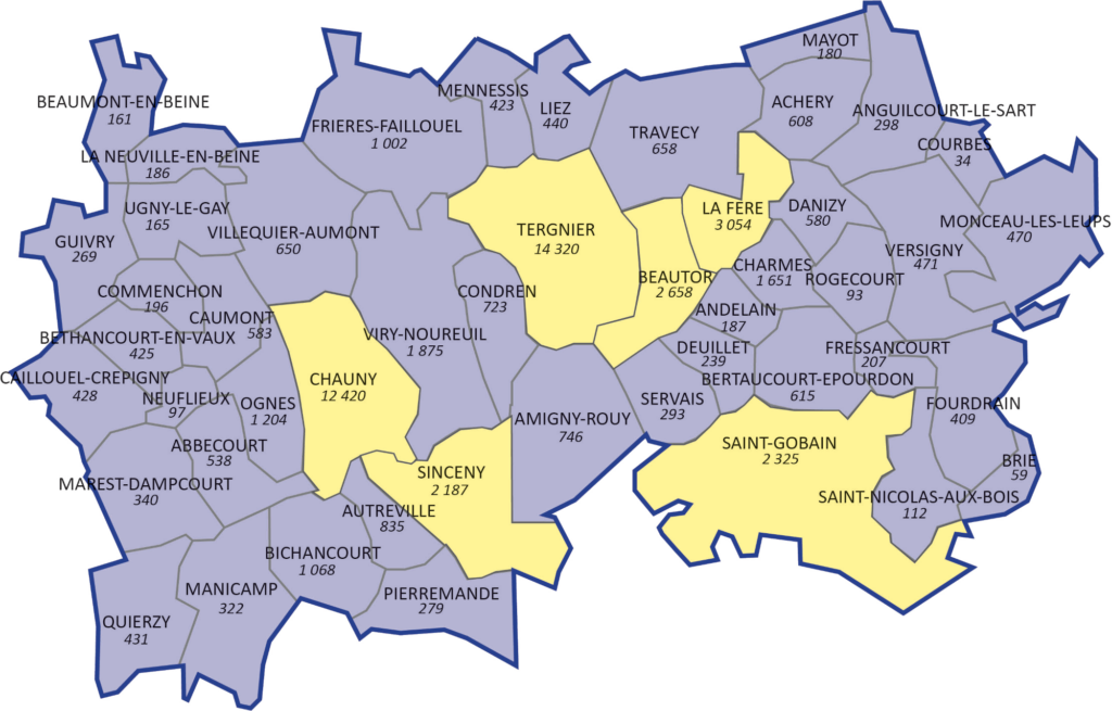 Sont concernés des périmètres répartis sur les six communes suivantes : Beautor, Chauny, La Fère, Saint-Gobain, Sinceny et Tergnier.