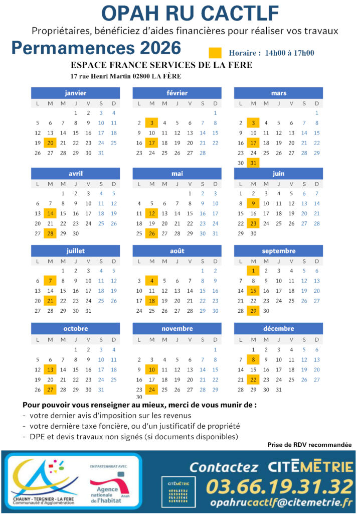 PLANNING DES PERMANENCES OPAH-RU 2026 DE CITÉMÉTRIE